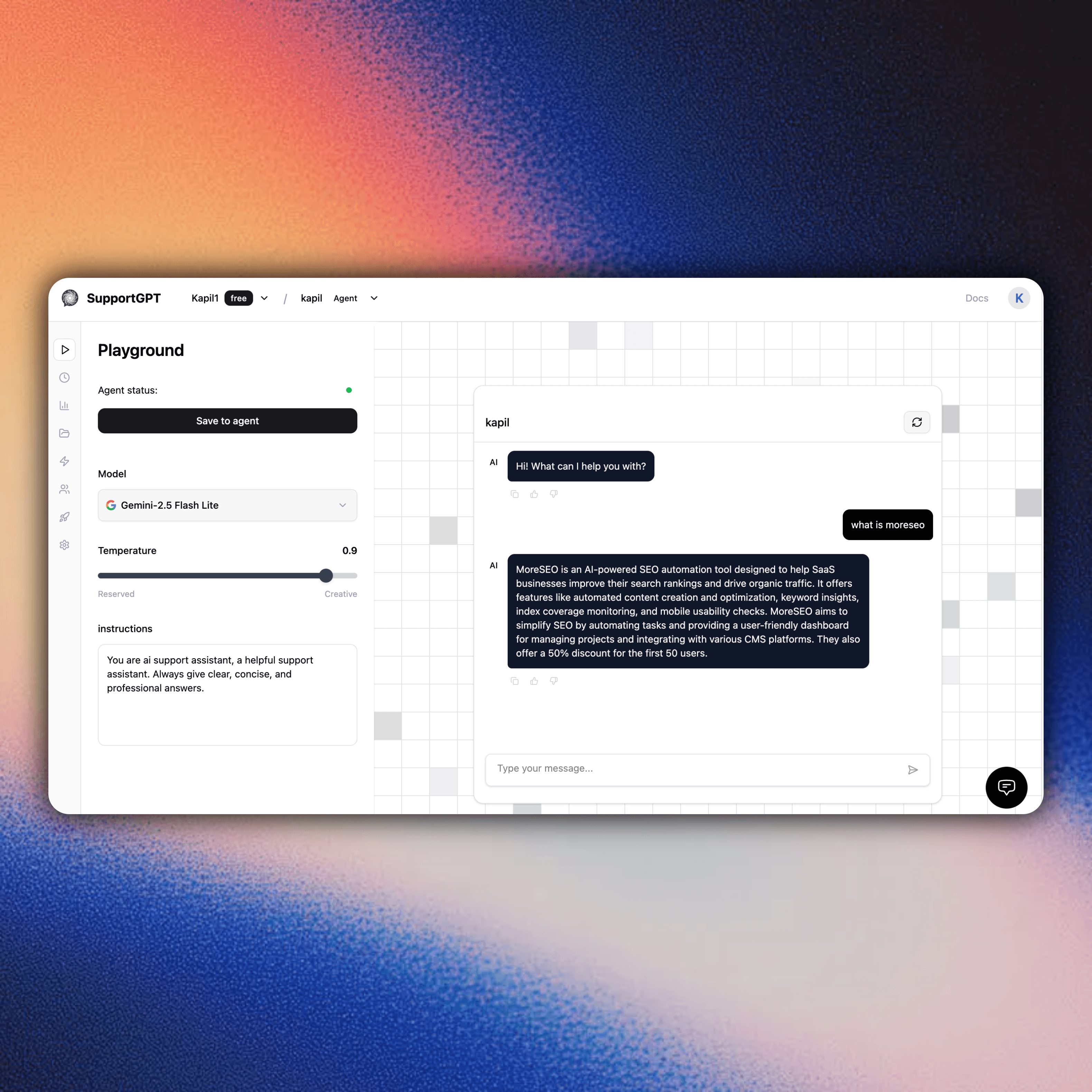 SupportGPT lets me deploy smart AI support agents instantly, saving time and improving customer experience.